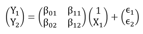 Modelos para varias variables de respuesta. Esta regresión tiene múltiples Yi que derivan de los mismos datos X. Se expresan con fórmulas diferentes. Este es un ejemplo del sistema con 2 ecuaciones: