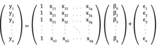 donde β representa las estimaciones de parámetros lineales que se deben calcular y ϵ representa los términos de error.
